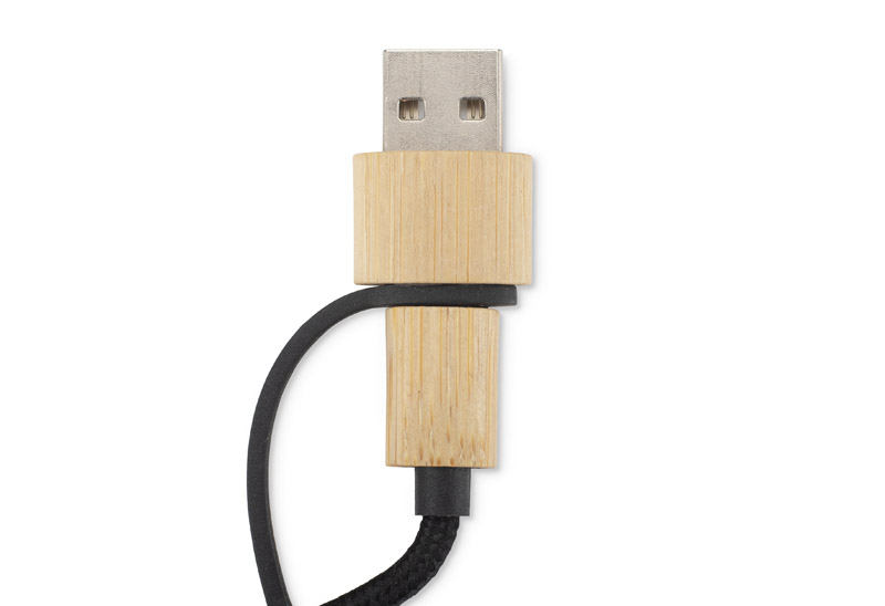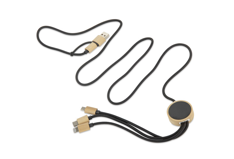 GLOWIK is a 4-in-1 universal charging cable with a bamboo finish and space for labelling.