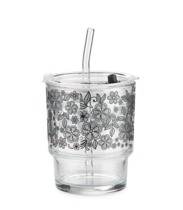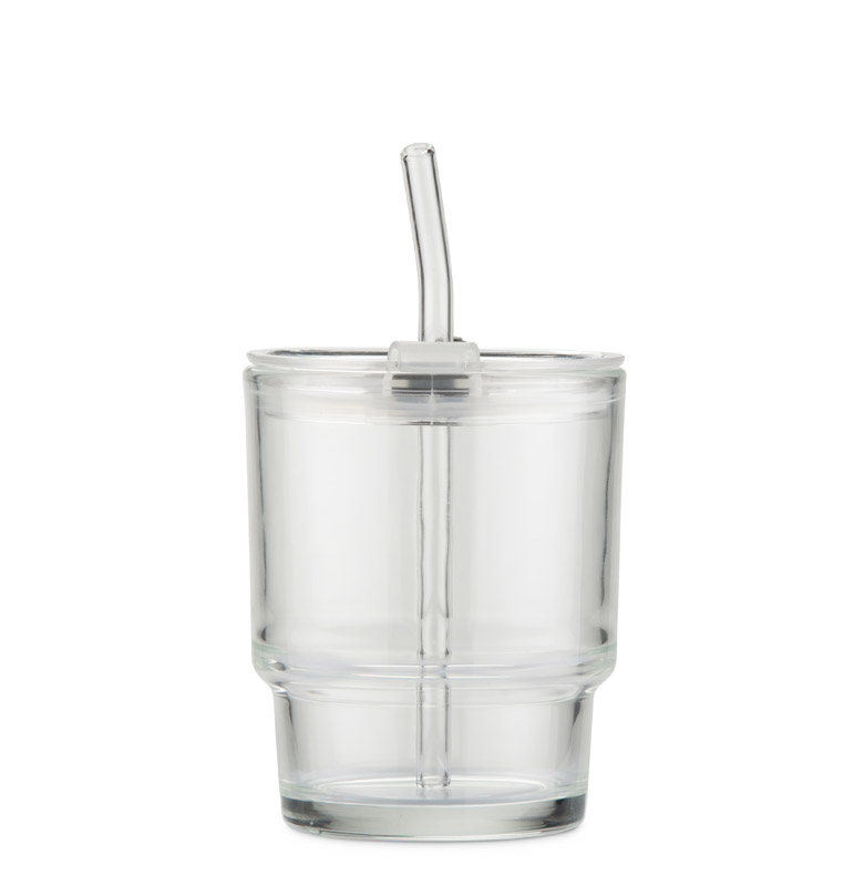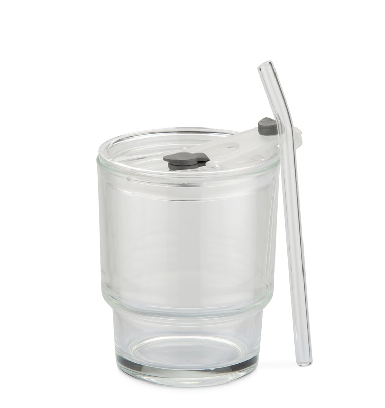 The 350 ml NOA cup is made of glass and comes with a matching glass straw and lid. The lid with a hole makes it possible to drink through the straw or, after removing it, to use it like a classic glass. The clear form and minimalist design give the cup a modern and universal appearance.