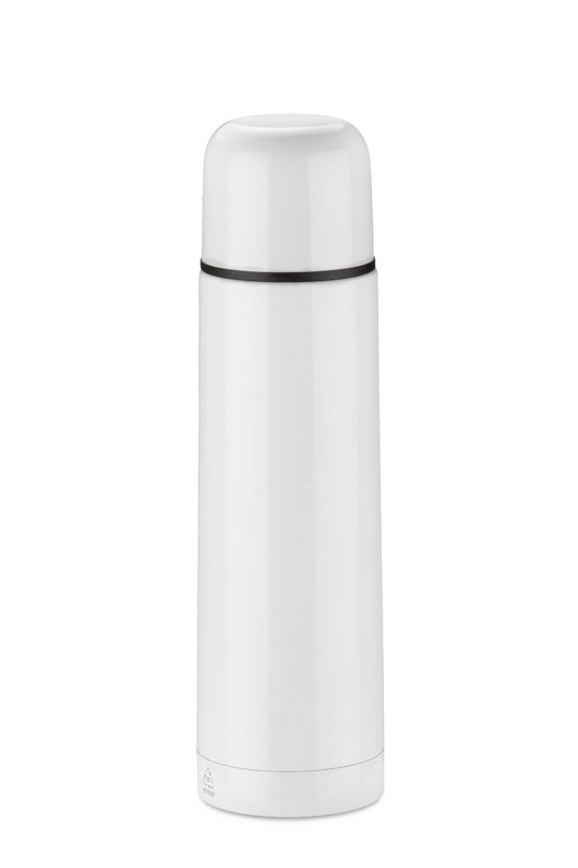 The 500 ml VARMO thermos is a practical model made of high-quality stainless steel. The double wall with vacuum insulation maintains the temperature of the beverages for many hours and the leak-proof cap prevents leakage. The "press" opening mechanism allows quick and convenient access to the contents. The ergonomic shape means that the thermos fits comfortably in the hand and fits easily into a bag or backpack. Available in several colours, it is perfect as a corporate gadget with the possibility of branding.