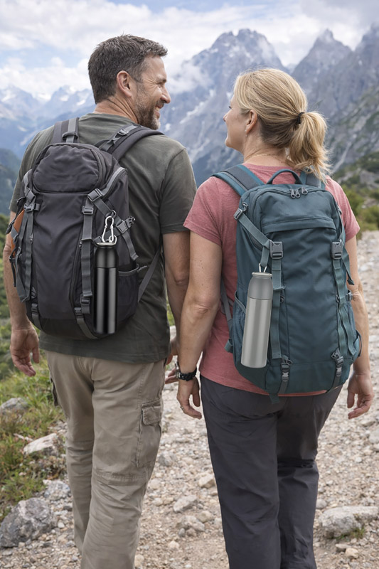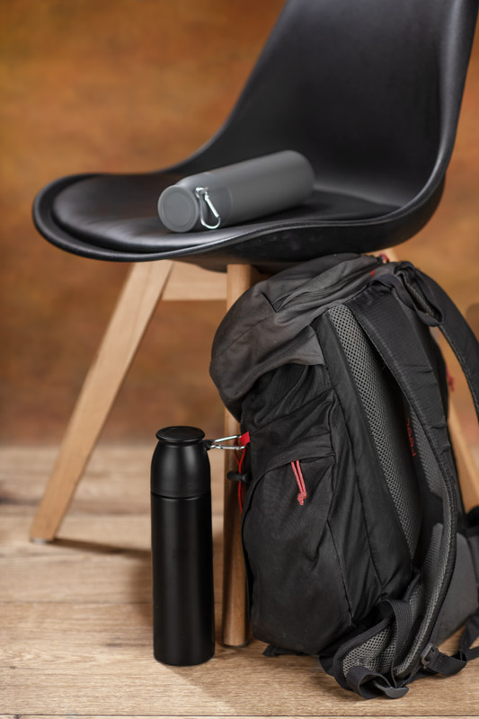 The FAZARI 500 ml thermos is made of stainless steel, so it effectively keeps drinks hot for up to 8 hours. Equipped with a convenient "press" opening mechanism, which makes it easy to use the thermos on the go or in the car. The classic threaded cap doubles as a cup and the attached carabiner allows the thermos to be clipped to a bag or backpack. The slimline design makes it fit easily into car handles and side pockets of backpacks.