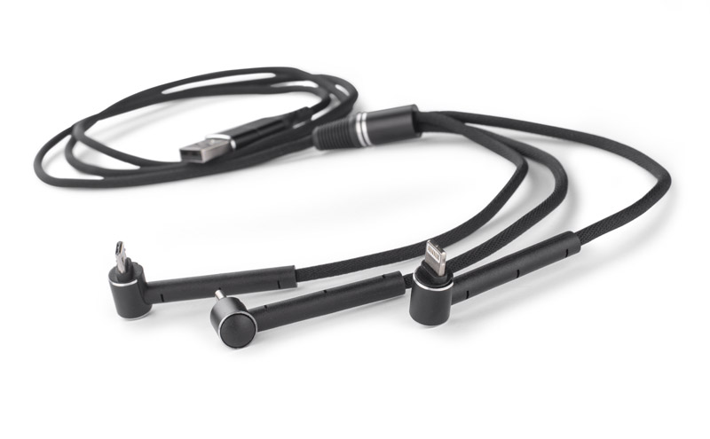 The RICO USB charging cable offers six functions in one product. It has two inputs: USB-A and USB-C and three outputs: micro USB, USB-C and Lightning (iPhone). In addition, three ends have special plastic reinforcements that allow the cable to be used as a phone holder! The cable itself is covered with a durable material and is approx. 1.20 m long. Only to charge.