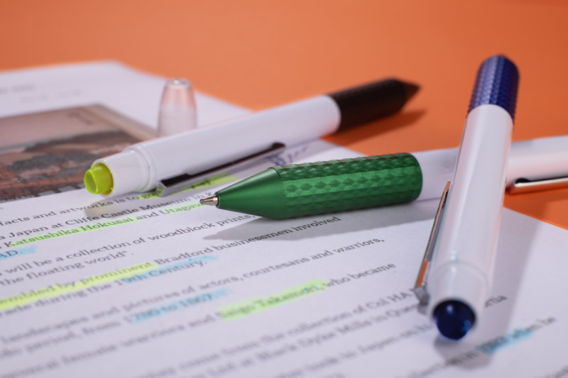The FLUO ballpoint pen is a practical combination of a ballpoint pen and highlighter in one body. Equipped with a twist mechanism and a metal clip, it combines the convenience of writing with the ability to highlight notes. The crayon-like highlighter does not dry out and is always ready to use. The compact design makes FLUO suitable for the office, university and on the go.