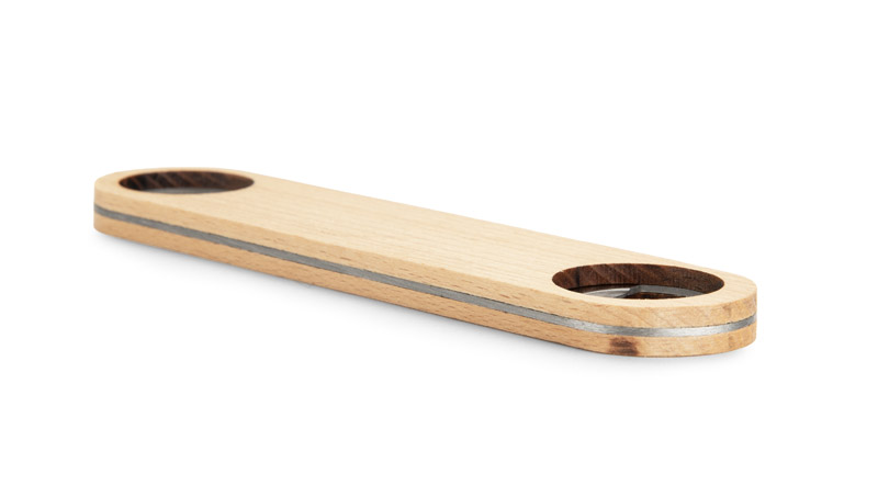 The TAP bottle opener is made of stainless steel and beech wood. It has a hole that allows it to be hung in a convenient place. It is carefully made, practical and convenient to use.