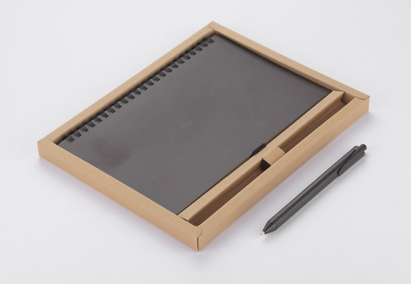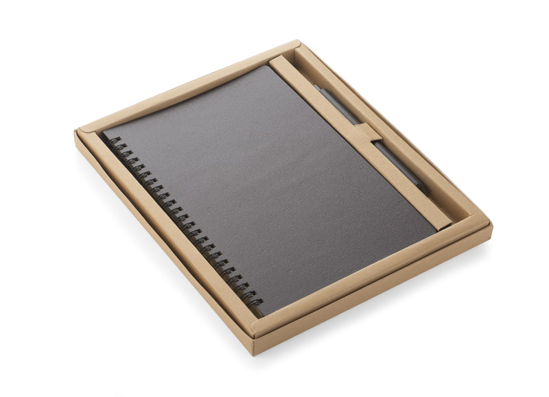 KOPI notebook is the perfect idea for an eco-friendly gift. The cover of the notebook and the pen are made of plastic mixed in 40% with coffee beans, allowing for much less plastic to be used. It has 70 line sheets made of brown, recycled paper. The set includes a ballpoint pen with blue refill. The whole thing is packed in a nice brown cardboard box which perfectly meets the ecological trend.