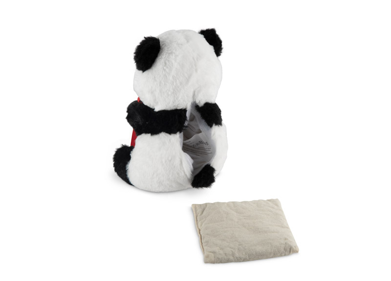 The LUNKA plush panda hot pack is a soft toy with a removable insert filled with ceramic beads that retain warmth for a long time once heated. Perfect for warming hands, stomach, or neck, it provides a pleasant feeling of comfort and relaxation. The LUNKA panda is a safe alternative to traditional hot water bottles — no water and no risk of burns. The built-in pocket can also serve as a small compartment for accessories. A charming and practical promotional gadget, available with logo printing.