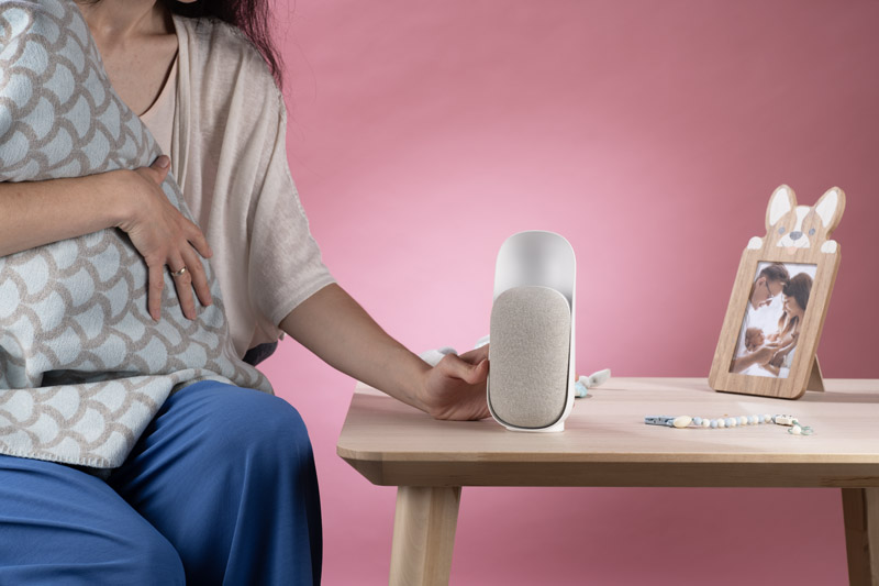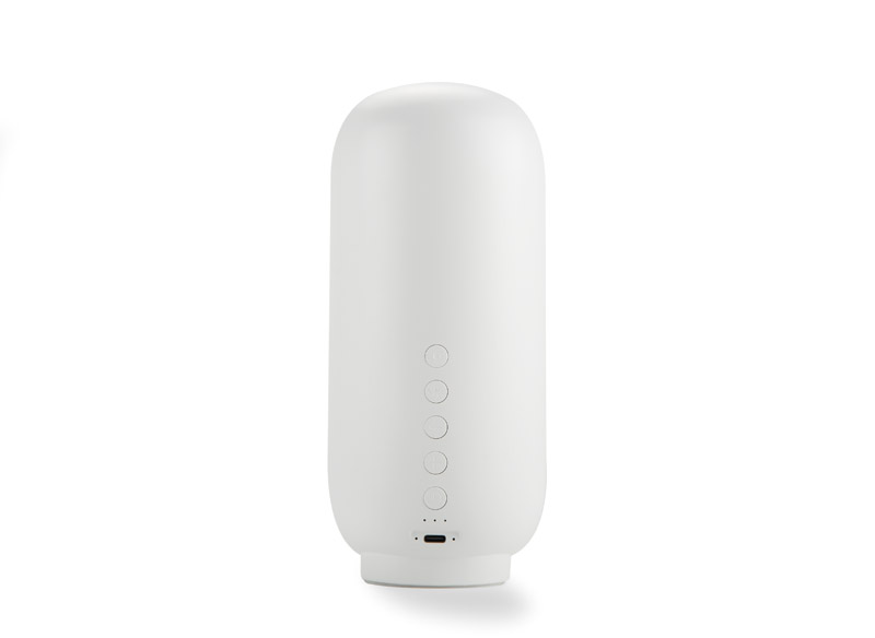 CALMERA is a stylish 3-in-1 gadget that combines the function of a Bluetooth speaker, an atmospheric bedside lamp and a hummer (sleeper) with the soothing sounds of nature. A brook, sea waves, rain with thunder, fire, white noise or a lullaby - just choose and allow yourself a moment of tranquillity. Thanks to its compact design, timer and fast charging via USB-C, CALMERA runs for up to 6 hours, creating a relaxing atmosphere wherever you are. Ideal for massage parlours, wellness spaces, hotel rooms and advertising campaigns that want to speak the language of tranquillity.