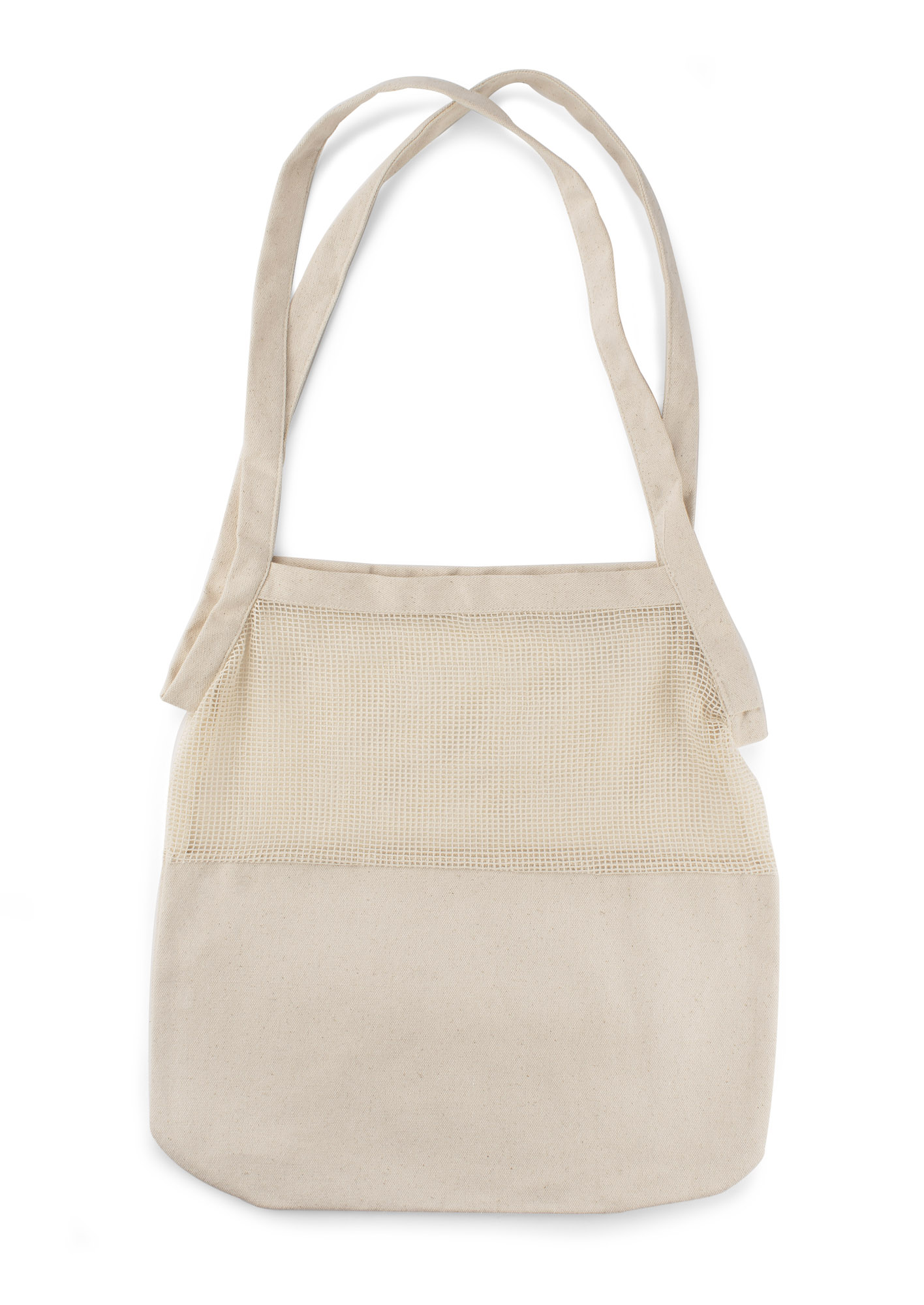 Izturīga 280 g/m² kokvilnas soma ar gariem rokturiem. Divu materiālu kombinācija rada modernu un pievilcīgu izskatu.