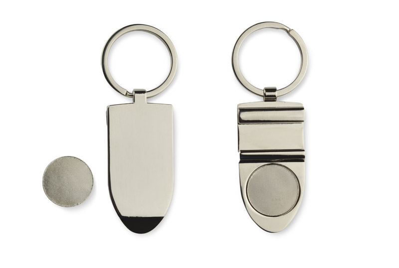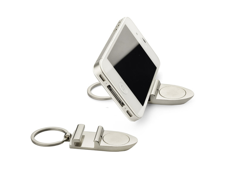 Elegants rīks ar četrām funkcijām: atslēgu piekariņš, iepirkumu ratiņu žetons, telefona statīvs un pudeļu attaisāmais.