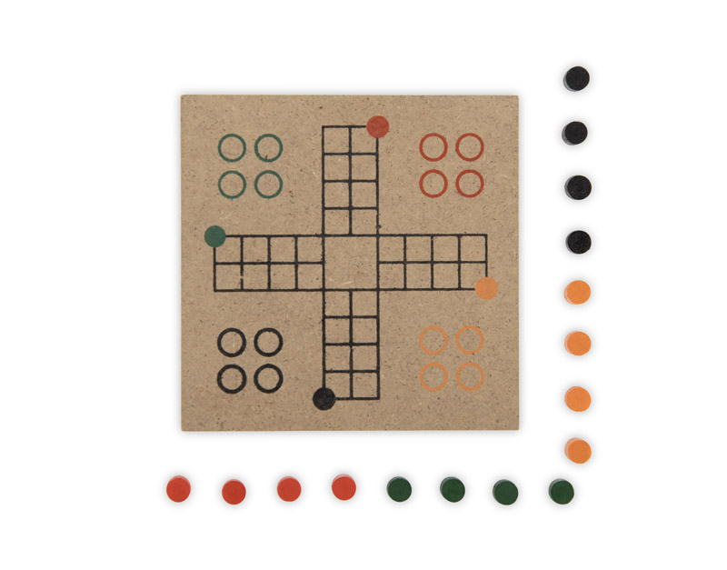 Klasiskās spēles 'Cilvēciņ, neapvainojies' miniatūra versija. Papīra komplekts ar koka figūriņām – lieliska kabatas izmēra dāvana vai reklāmas suvenīrs.