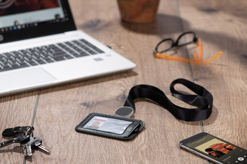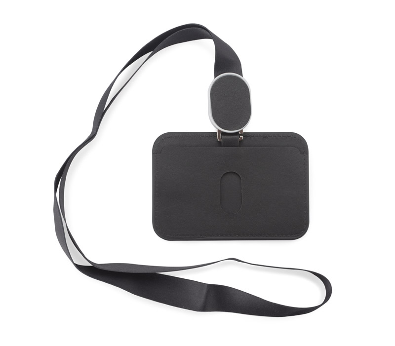 Ērts turētājs darba apliecībām vai piekļuves kartēm. Aprīkots ar 35 cm garu 'yo-yo' tipa mehānismu un mīkstu kakla lenti (86 cm) komfortablai nēsāšanai.