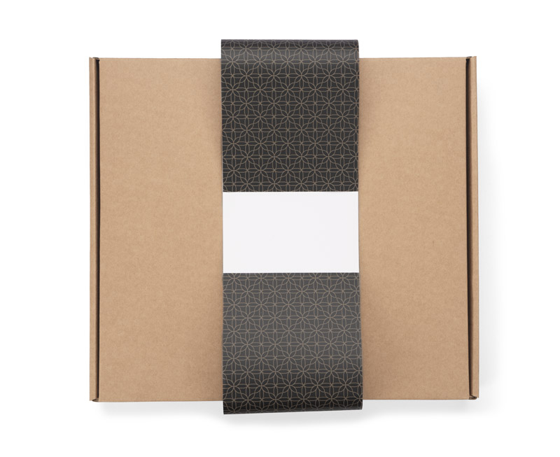 Gatavs dāvanu iesaiņojums: izturīga kraftpapīra kārbiņa, dekoratīvs papīra pildījums un apkārt liekama lente. Videi neitrāls un bioloģiski noārdāms risinājums.
