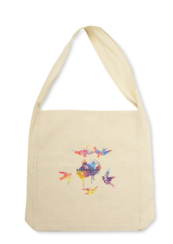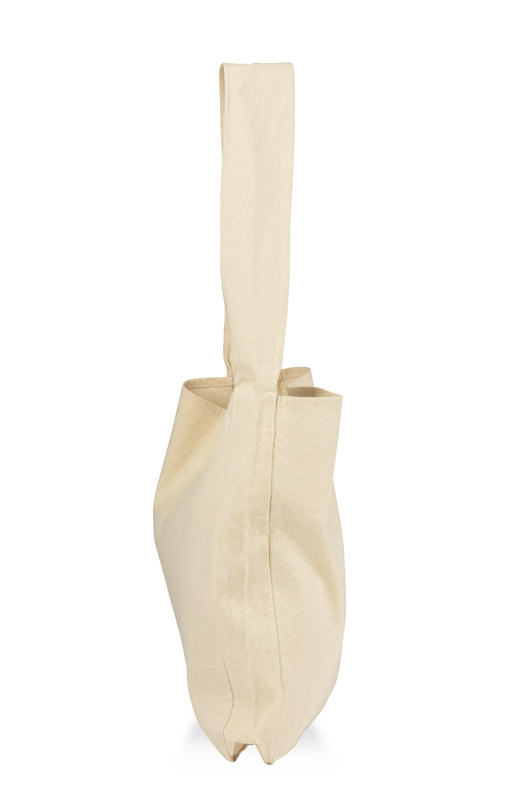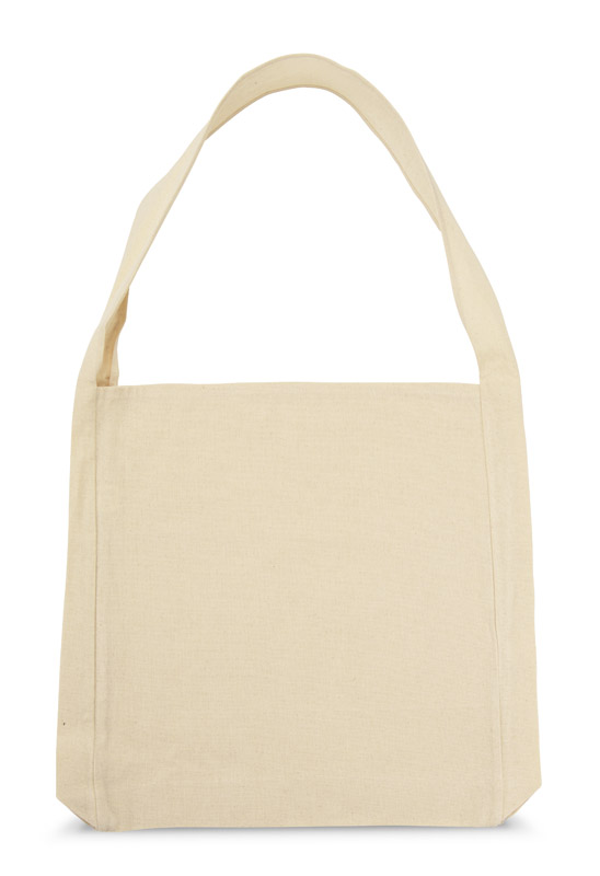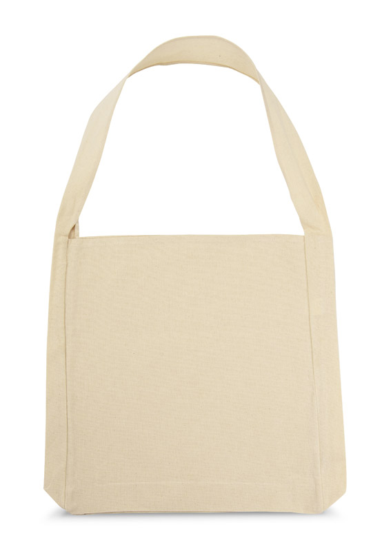Izturīga 200 g/m² kokvilnas soma ar paplašinātiem sāniem un apakšu. Viena gara siksna ērtai nēsāšanai uz pleca. Ideāli piemērota personalizācijai un lieliem pirkumiem.