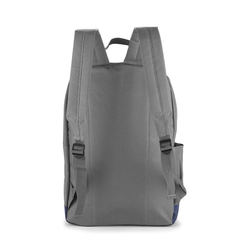Kompakta 600D rPET mugursoma ar vienu galveno nodalījumu un ietilpīgu priekšējo kabatu. Sānu kabata ūdens pudelei un polsterēta muguras daļa.