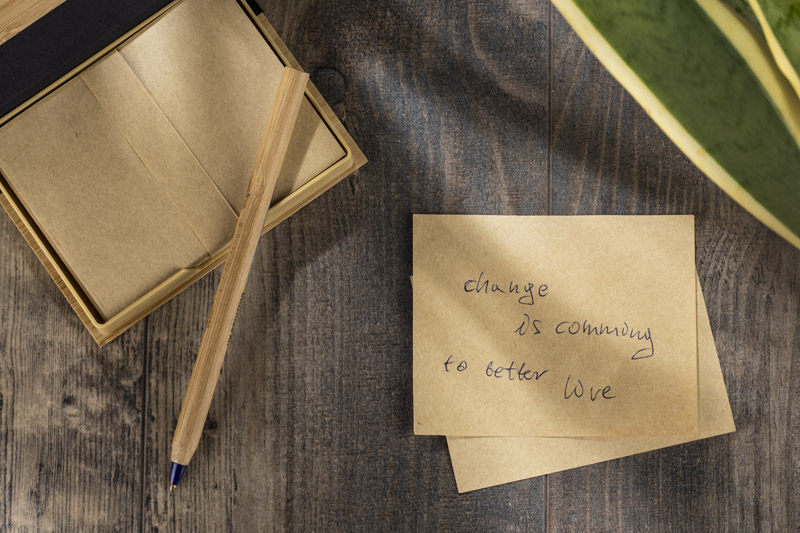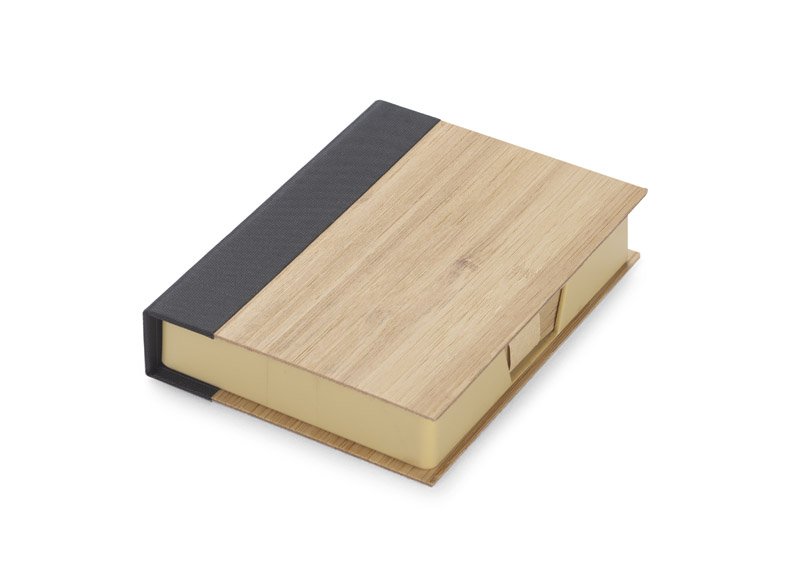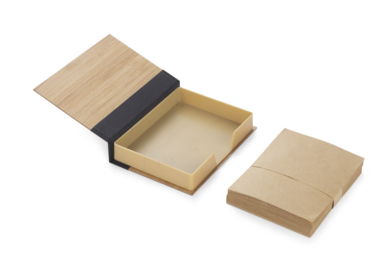Piezīmju lapiņu komplekts eleganti noformētā bambusa futrālī. Ietver brūnas lapiņas ātriem pierakstiem.