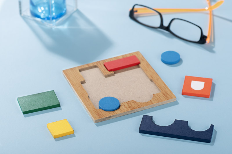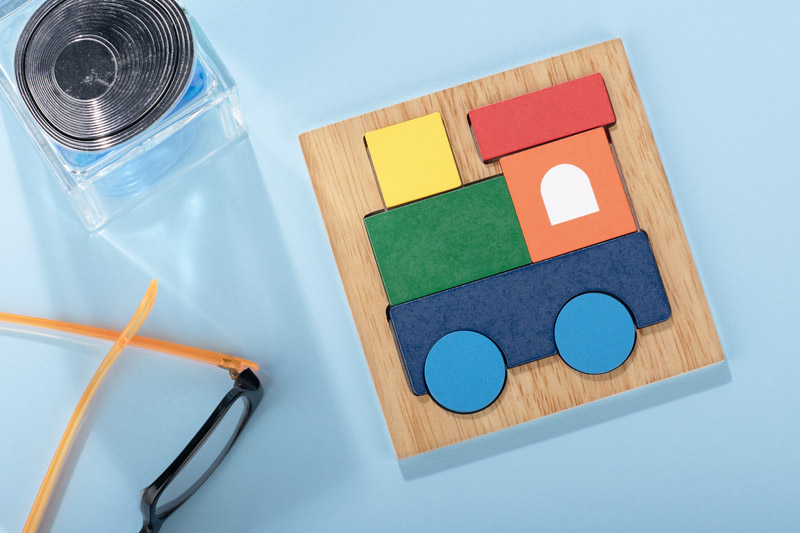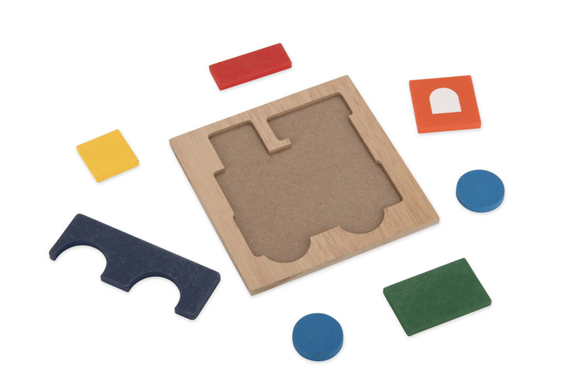 Krāsaina koka puzle lokomotīves formā. Attīsta radošumu un motoriku gan bērniem, gan pieaugušajiem. Izturīga konstrukcija un pievilcīgs dizains.