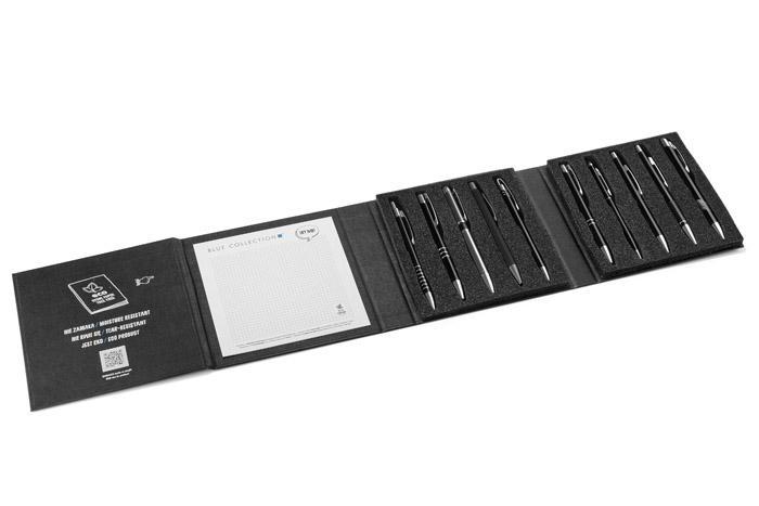 Elegants prezentācijas futrālis klasiskā melnā krāsā ar 10 metāla pildspalvām.