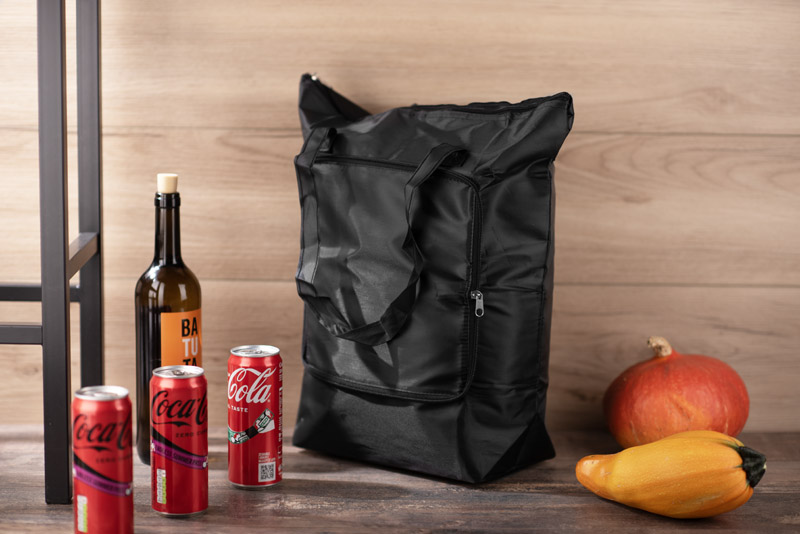 Praktiska saliekama soma ar termoizolācijas slāni pirkumiem, pludmalei vai piknikam. Kompakta salocītā veidā, aprīkota ar gariem rokturiem.