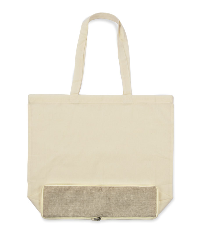 Izturīga kokvilnas soma ar džutas apdari. Praktiska konstrukcija ļauj to kompakti salocīt, kad tā netiek izmantota, ideāla ikdienas pirkumiem.