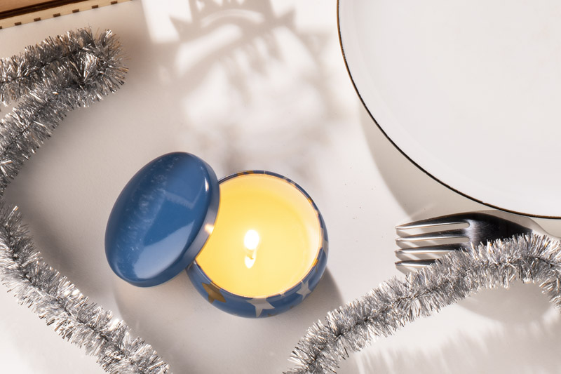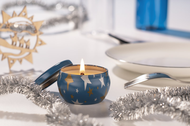 Svece no dabīga sojas vaska ar svaigu laima, bazilika un mandarīna aromātu. Iepakota oriģinālu zvaigžņu raksta metāla bundžiņā.
