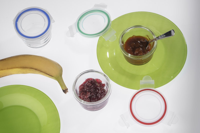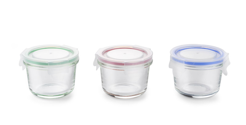 Trīs mazu borosilikāta stikla burciņu komplekts ar hermētiskiem vāciņiem. Piemērotas cepeškrāsnij, saldētavai un trauku mašīnai.