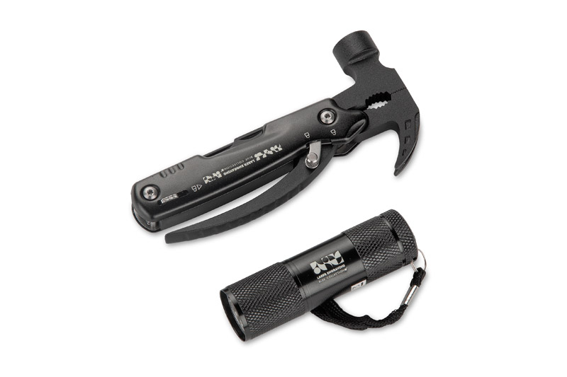 ZAXO rīku komplekts - lukturītis un multitūls ar āmuru, zāģi, nazi, skrūvgriežiem, pudeļu attaisāmo un knaiblēm. Kompakts, vienmēr pa rokai. Iepakots kastē.