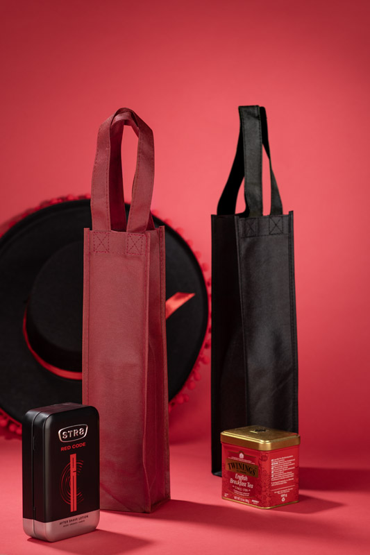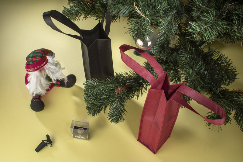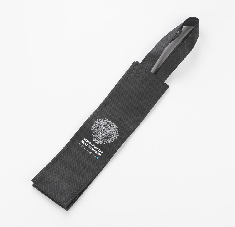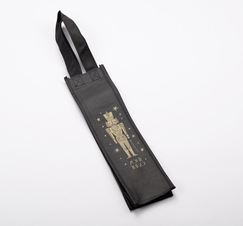 Izturīga un viegla neaustā materiāla soma vīna pudelei ar ērtiem rokturiem. Estētisks dāvanas iepakojums atkārtotai lietošanai.