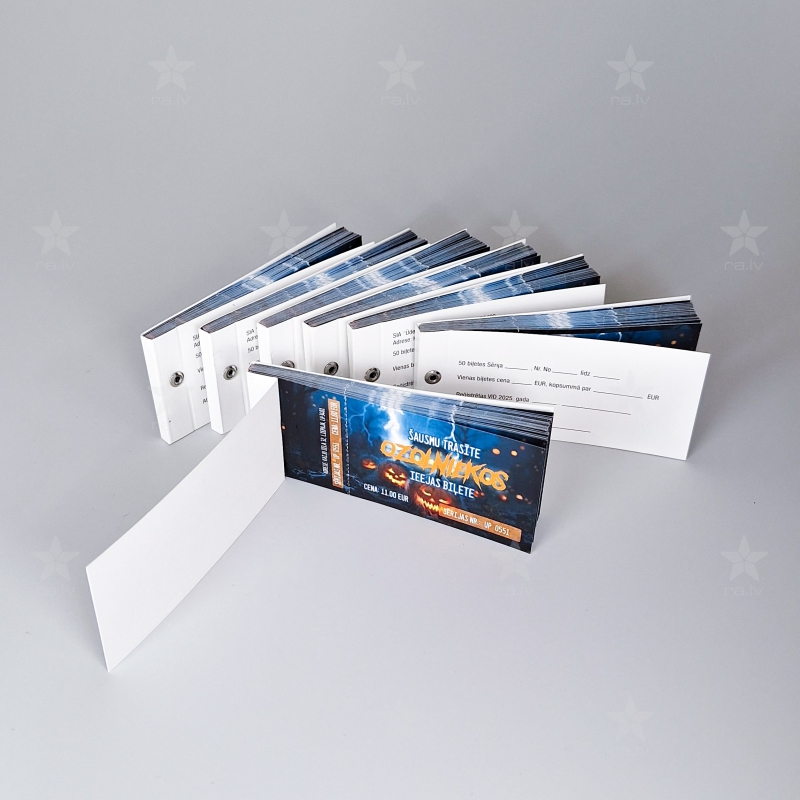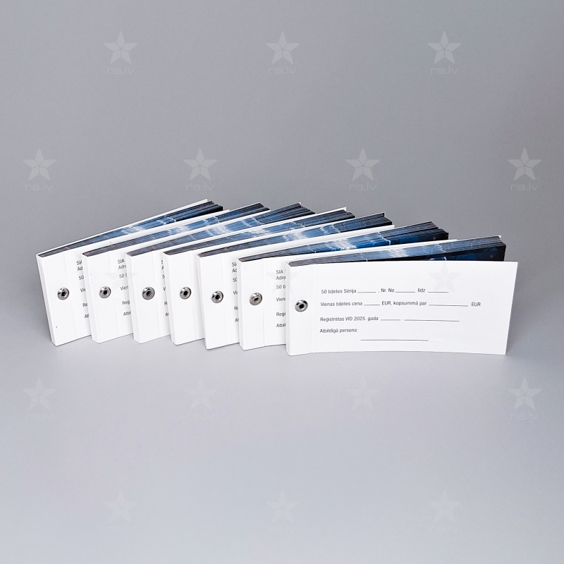 Pasākumu biļetes ar numerāciju blokos pa 50 gab ar kniedi