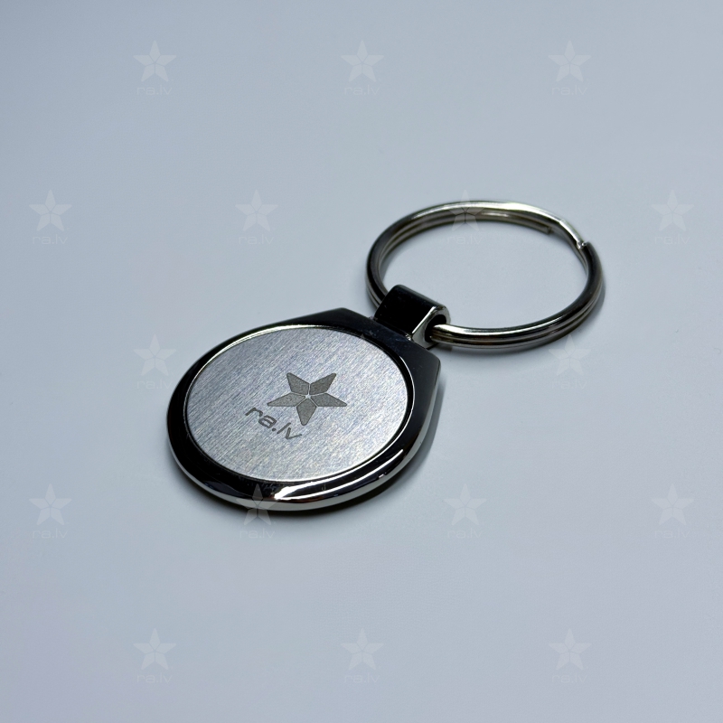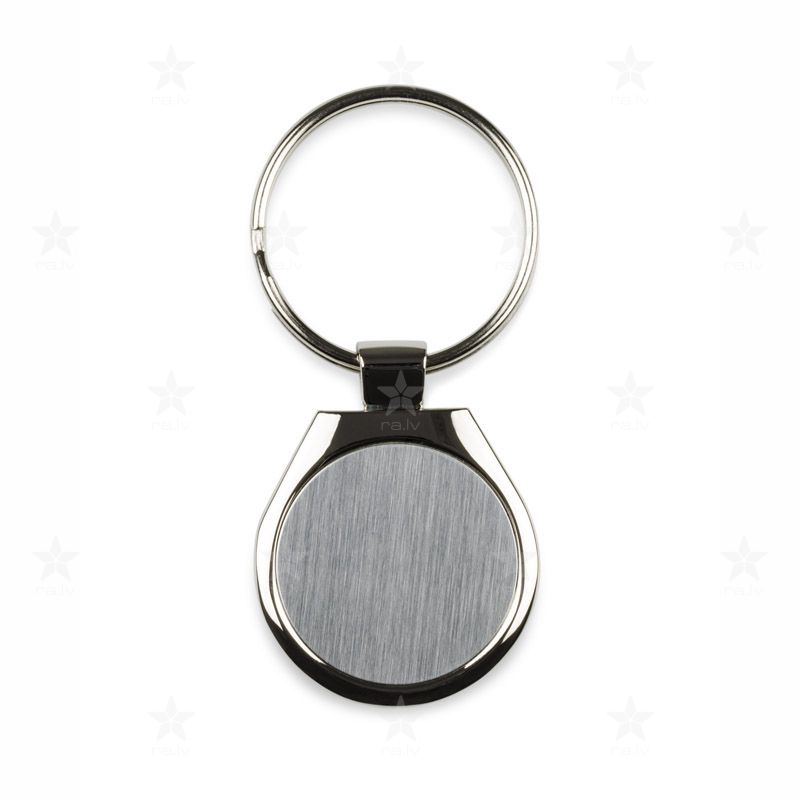 Klasisks hromēta metāla atslēgu piekariņš ar elegantu dizainu un personalizācijas iespējām.